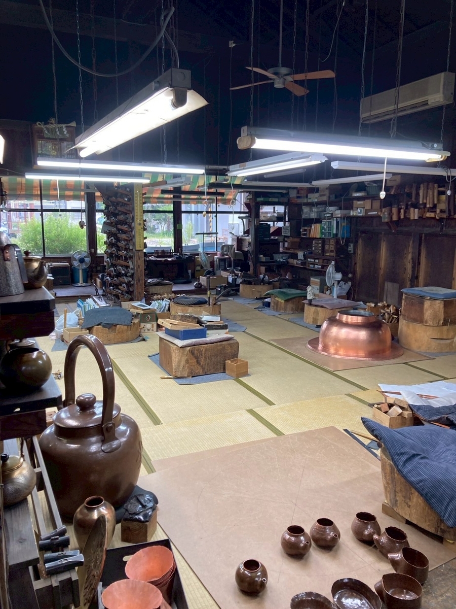 本日出勤していらっしゃった職人さんに、実際に銅器を加工する様子を見せていただきました。(写真も撮影してOKとのことでした)