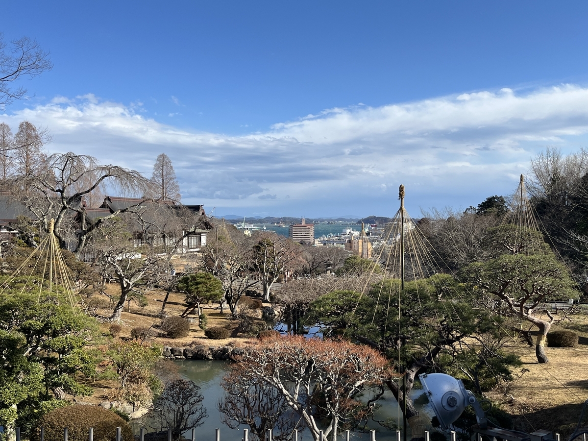 ふと後ろを振り返ってみると、塩竈市を一望。気付かぬうちに案外高いところまで来ていたようです。